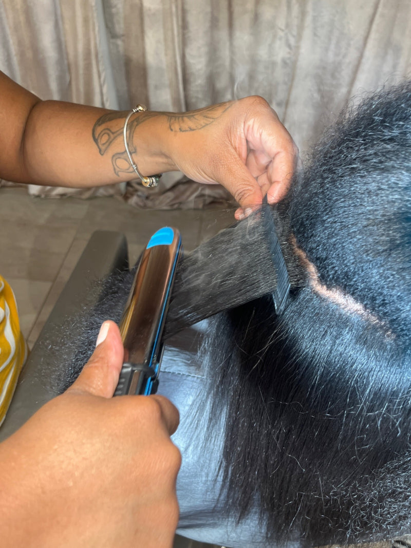 Luxury extensions that protect the natural hair — while giving clients fullness, movement, and scalp-like results. This technique allows stylists to work smarter, not harder, and charge premium rates starting at $1,000 per install.